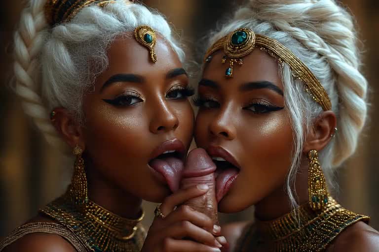 A woman in front of a penis. She is sticking…