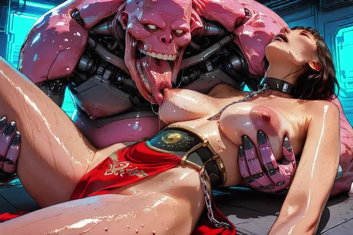 The monster caresses and cups her breast as he repeatedly…