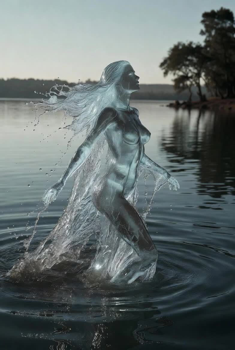 Water being emerges out of the lake in the form…