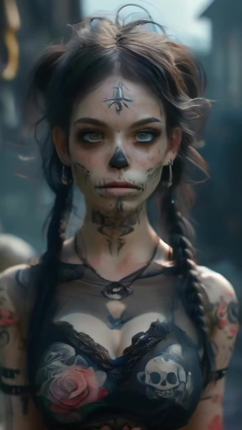 parameters 1 girl,solo,(pale skin:1.3),face tattoos,close up portrait,, completely covered tattoos,body…